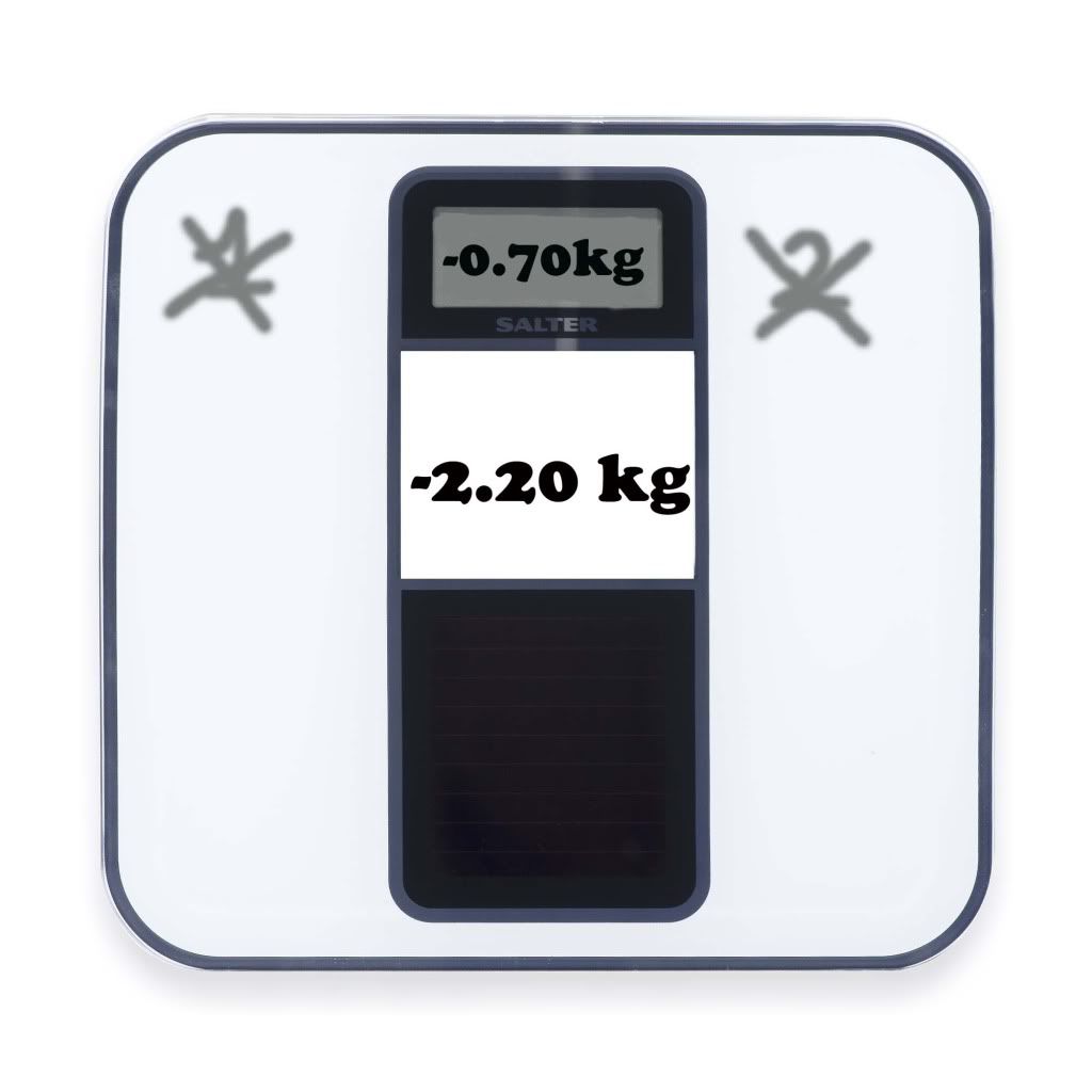 Purtroppo non è un errore di battitura. L'ultima settimana è stata un po' irregolare (dal punto di vista alimentare) e così ho ripreso un chiletto. Cose che capitano, l'importante è che non diventi un'abitudine.