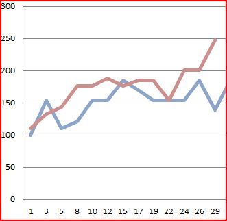 Asse delle "y": numero di reps moltiplicate per il peso del manubrio (in libbre)