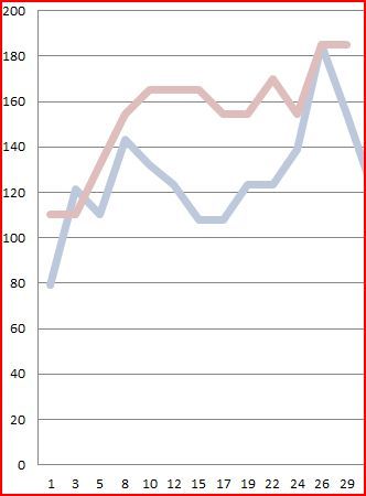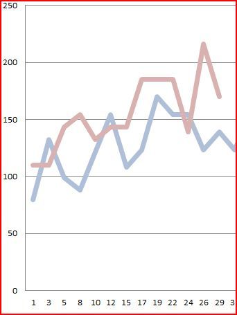 Asse delle "y": numero di reps moltiplicato per peso del manubrio (in libbre)