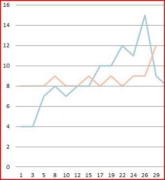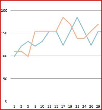 Asse delle "y": numero di reps moltiplicate per il peso del manubrio (in libbre)